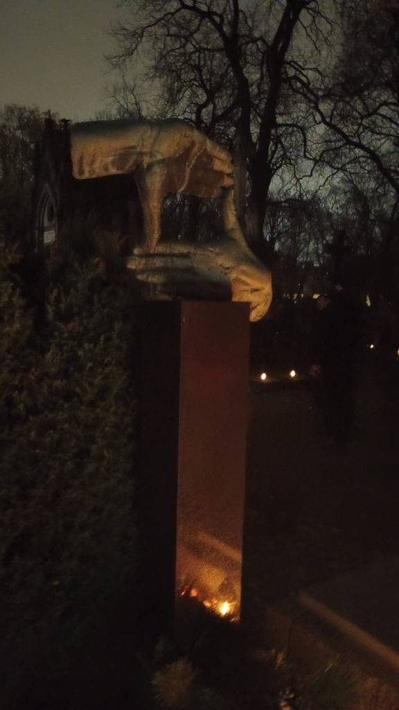 I visited the grave of Poland’s most famous and beloved filmmaker Krzysztof Kieślowski, who died tragically young at 55 from the aftermath of a heart attack. His grave features the classic two handed “frame” of a filmmaker envisioning his shot. It was moving to see the esteem Poles still hold him in, with his grave being one of the most illuminated of my visit. I almost wished I’d brought a candle for the great artist myself, although it would have been hard to squeeze another one in.