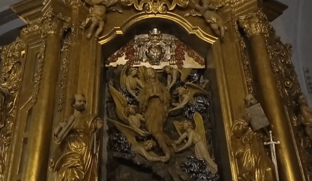 These days the landmark that dominates Toruń’s central visage is the cathedral of Saint John, which surprised and delighted me with a 14th century icon of Mary Magdalene getting held aloft by angels in her full hair-suit – a bizarre medieval crossover legend with Saint Mary of Egypt, and a direct tie-in/spin-off of the Southern France legends that inspired the nonsense of The DaVinci Code. The carving work is simply stunning, depicting Saint Mary in full sasquatch glory….