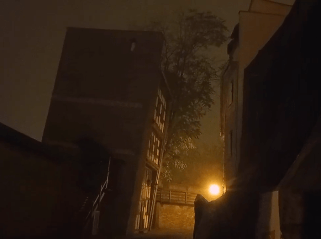 Sometime later at night or early in the morning I tilted a bit as I walked up the stairs that lead to the 2nd story of the town’s leaning tower. The steep winding stairwell of my lodging had dissuaded me from doing any drinking, but I still kinda got the spins for a second there, trying to find an equilibrium to what I was looking at. I’m sure there’s an old story to why the tower leans, at this point it’s become a deliberate adaptation, with the top two stories tiered out and creating overhangs below.