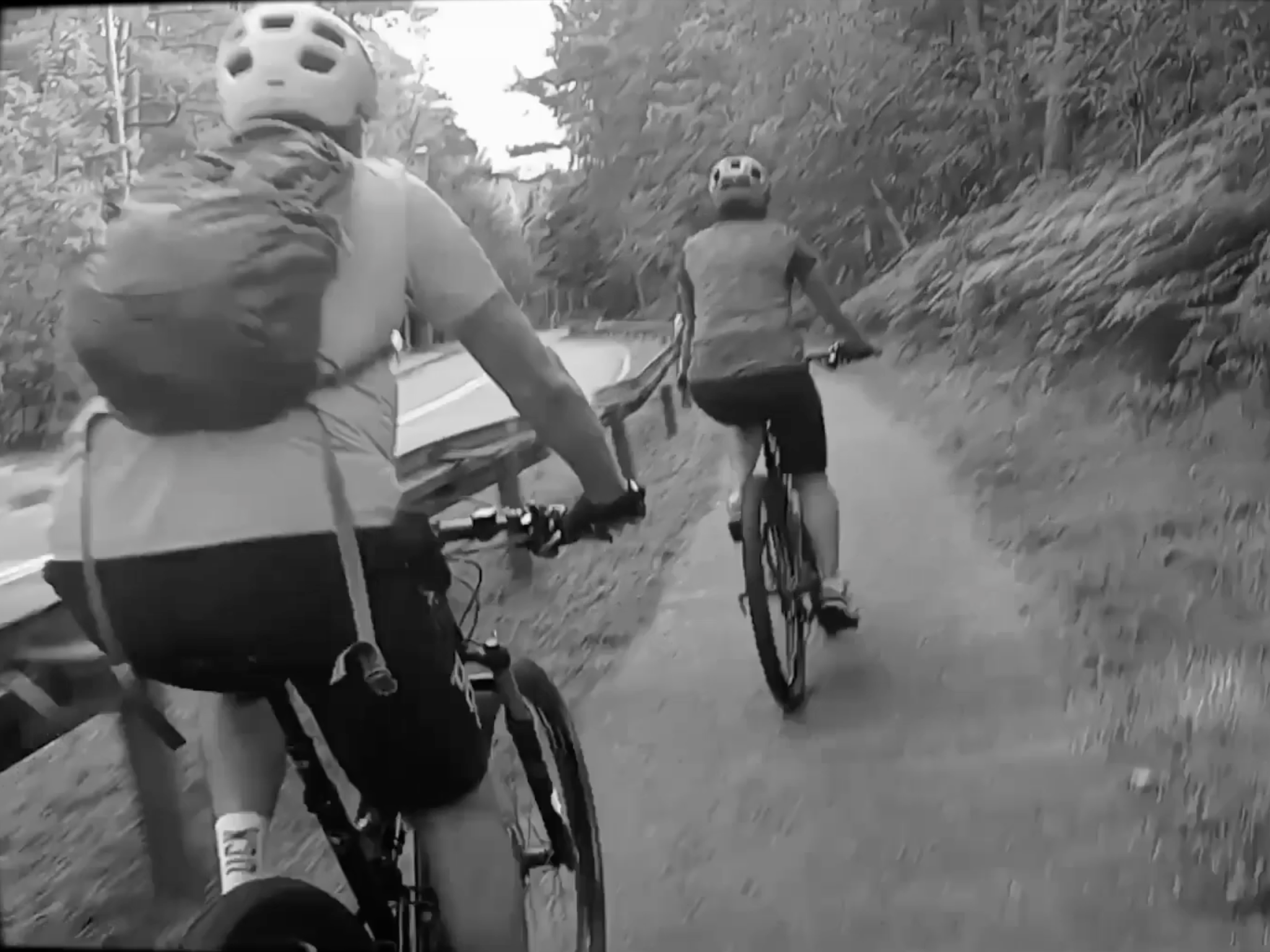 The bike route cuts across the highway to some merciful dirt trails that wind hypnotically through the trees.