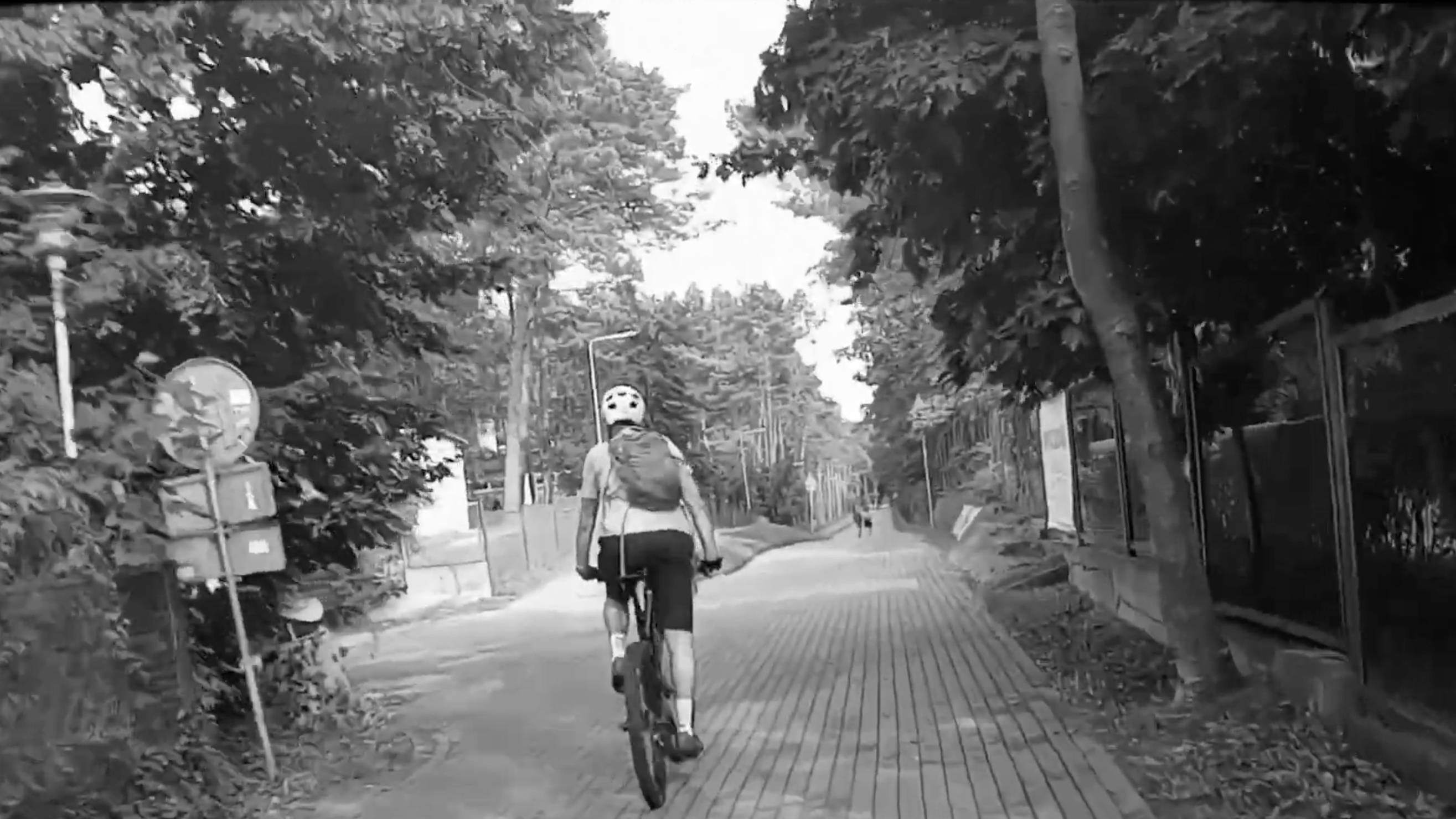 No longer a one-way path on either side of the road, you’re now on a two-way cycling highway, with steady traffic in both directions.