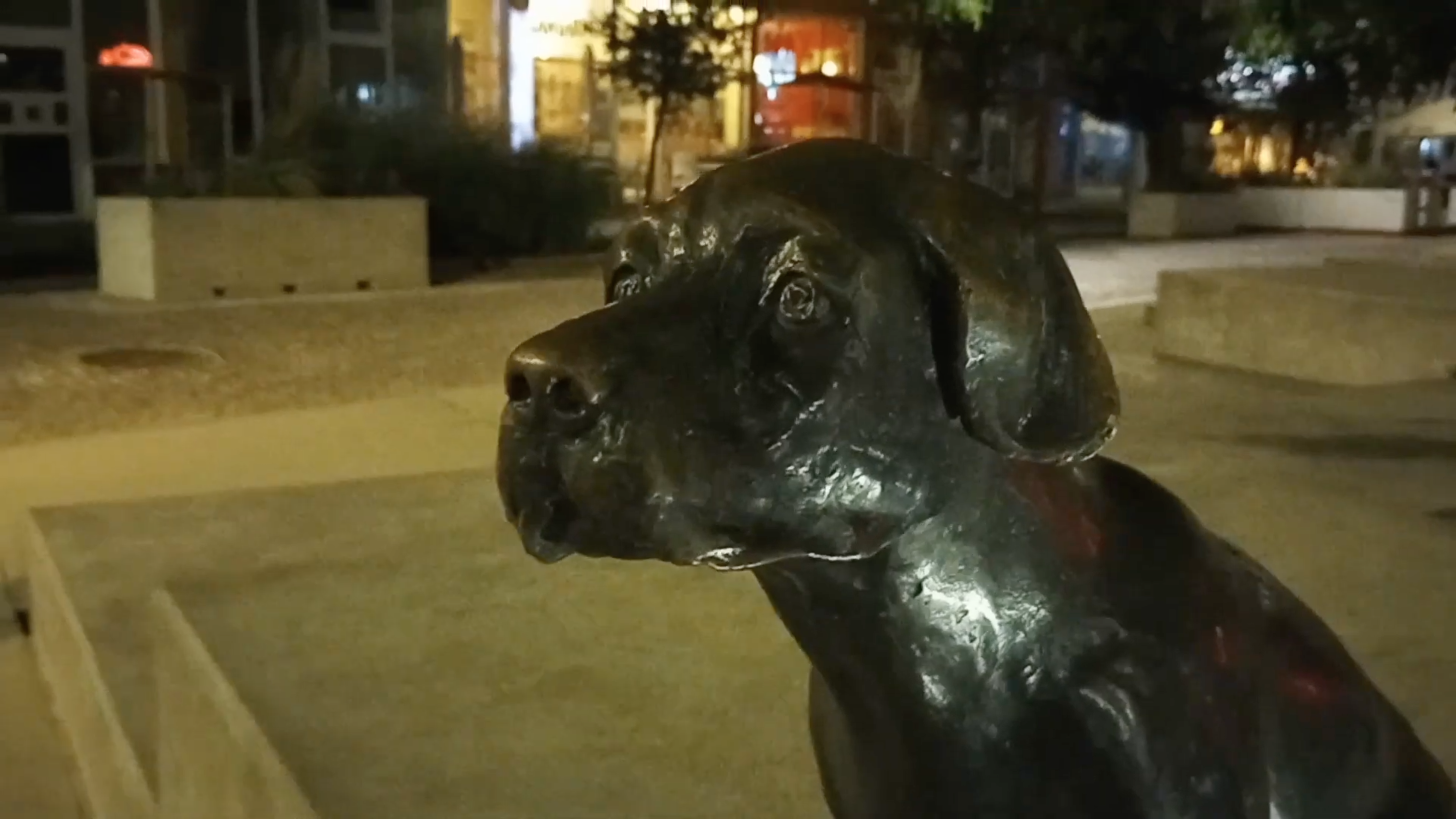 I caught a fuzzy picture of a guy sitting next to the dog, making a good stand-in for the missing patriarch of the family, like a soldier or ghost returned from the war.