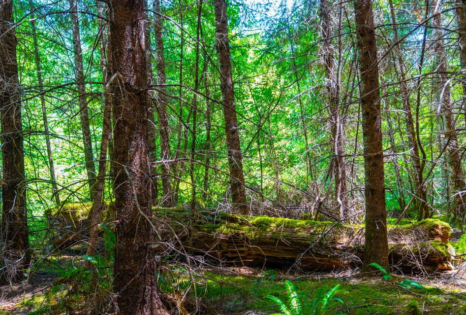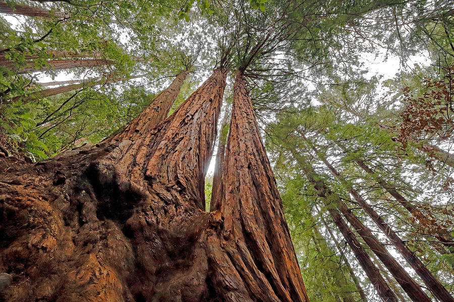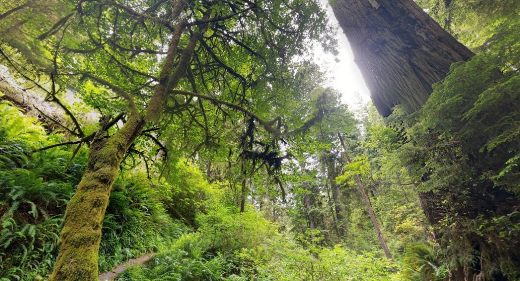 As soon as our train came in sight, two of us started on ahead and entered a very thick forest soon after leaving the house, mostly redwood. My companion was fresh from the eastern states and was much struck with the size and appearance of the trees.