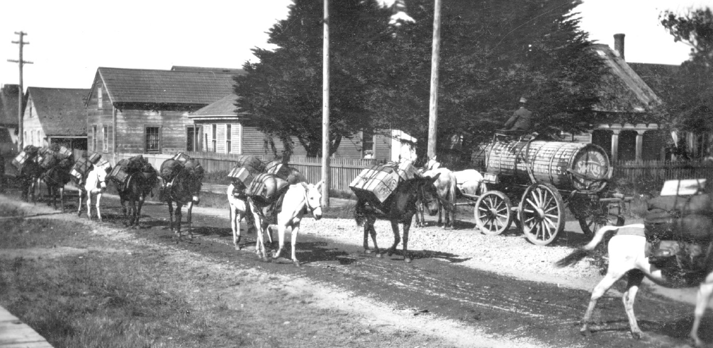 There was no wharf at Crescent City, so goods had to be offloaded on small boats, “lightered” to shore. Supplies were then transported overland via pack animal trains along a rough footpath to Jacksonville and other inland settlements.