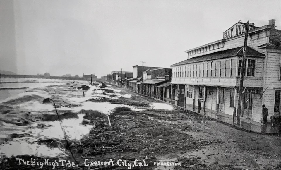 There is no good harbor at Crescent City. It was formerly called Paragon Bay after a small brig of that name that parted her cables while sitting at anchor there and drifted ashore and was lost. A bend of the coast inward forms a crescent at the northmost point. There is a rather high bluff of rocks and off the bluff down the coast there are several more islands and rocks. This is about what forms the harbor at Crescent City. It is not safe for large vessels. But I think it would be fine for any other vessel to anchor there.