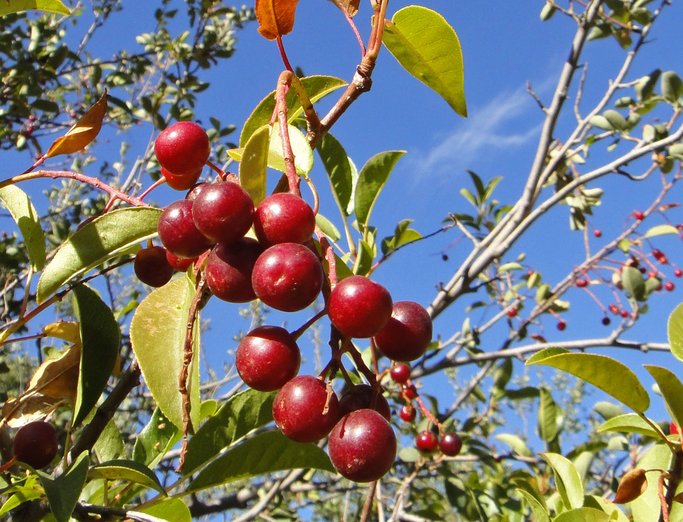 When we came into the valley I found wild cherries, ripe, and quite a treat they were. They were the first I had ever seen in this state. They were rather large, black, and grew on bushes about eight feet high.