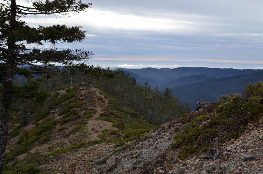 From there, the trail climbed Elk Camp Ridge to Cold Spring Mountain, then north along the ridge to Oregon Mountain, over it and down to the Illinois Valley to Sailor Diggings. (Ruffel 1995).