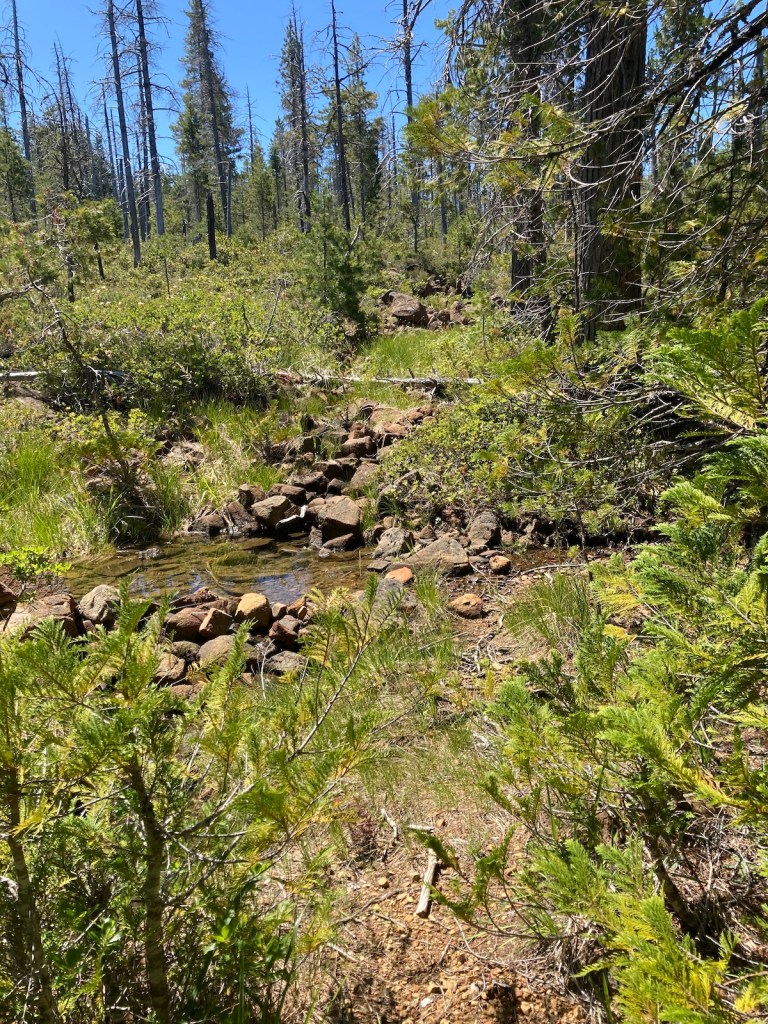 The McGrew Trail may be the most intact of all the old mule trails. Unfortunately the forest surrounding it was devastated by wildfire 25 years ago.